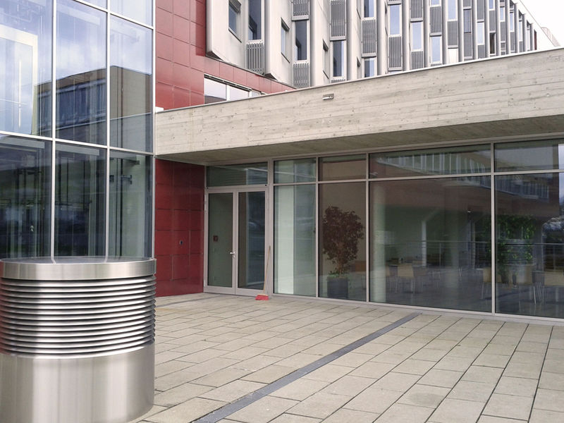 Diese Ausgangssituation und der ausgesprochene Wunsch nach ansprechenden Sitzgelegenheiten führten zu der Idee beides in einem zu kombinieren, ohne dass ein “Pflanztrog” sichtbar wird. Einzelne, scheinbar schwebende “Holzschollen” werden so über die Gesamtfläche des Platzes gestreut, dass der Gesamtfluss der Bewegung nicht unterbrochen wird. Diese Sitzschollen aus sonnenvergrautem Holz beherbergen nicht sichtbar in ihrem Inneren den erforderlichen Humusaufbau für zarte hochstämmige Birken, die schattenspendend für Atmosphäre sorgen und zum Verweilen einladen.