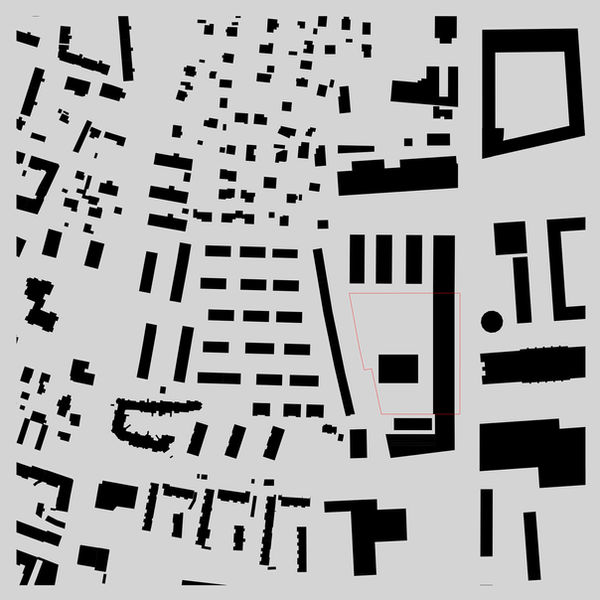 Der klar formulierte Baulückenverschluß wird in der Achse der östlichen Helmut-Listhalle aufgebrochen. Dort wird die zentrale Aula mit den wesentlichsten Räumlichkeiten platziert.